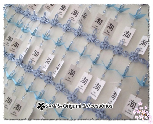Imãs de Tsuru com Nó Chinês e Móbiles de Tsuru e embalagem foram as lembrancinhas!