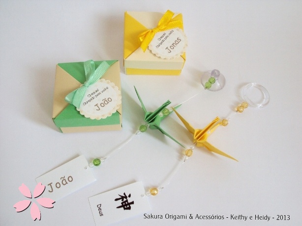 Hoje apresento para vocês as lembrancinhas mini móbile de tsuru luxo, versão baby! É nossa tradicional lembrancinha na caixinha de origami que ganhou novas roupagens e versões, como contei no posta anterior – clique aqui para recordar a versão wedding.