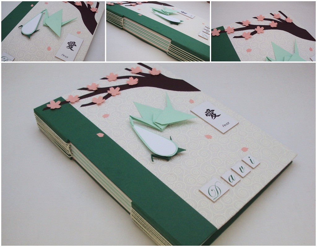 # Caderno de Mensagens do bebê – tsuru, árvore de sakura e kanji