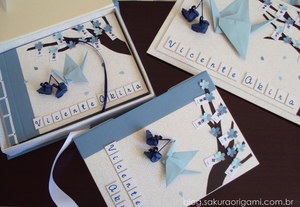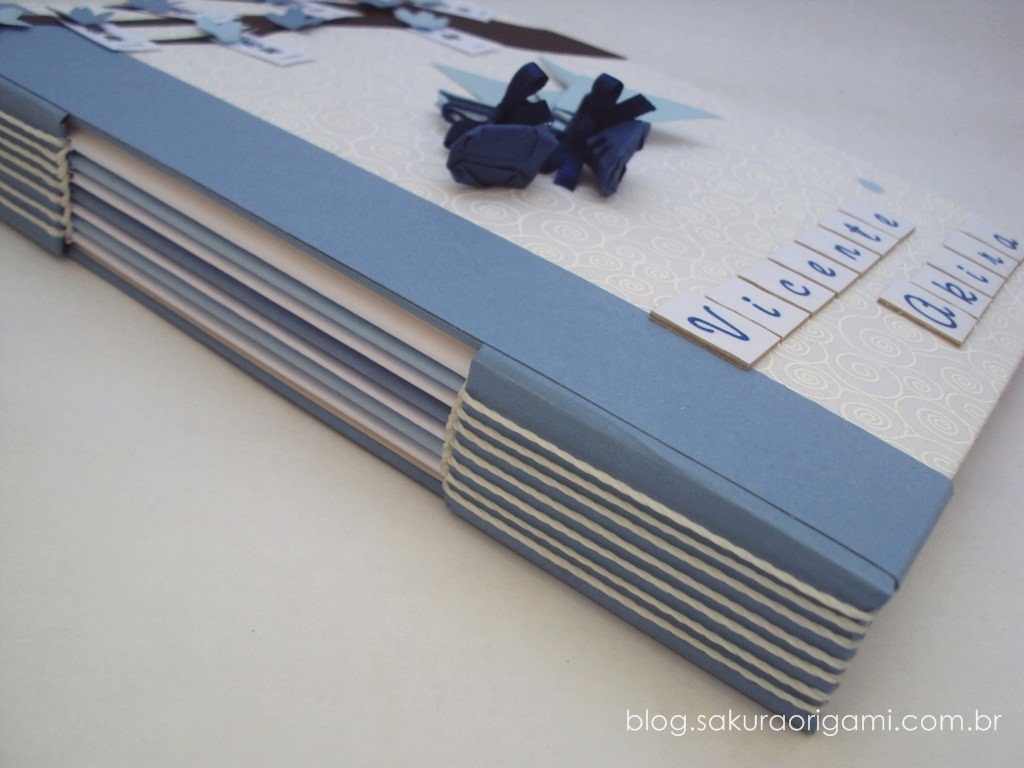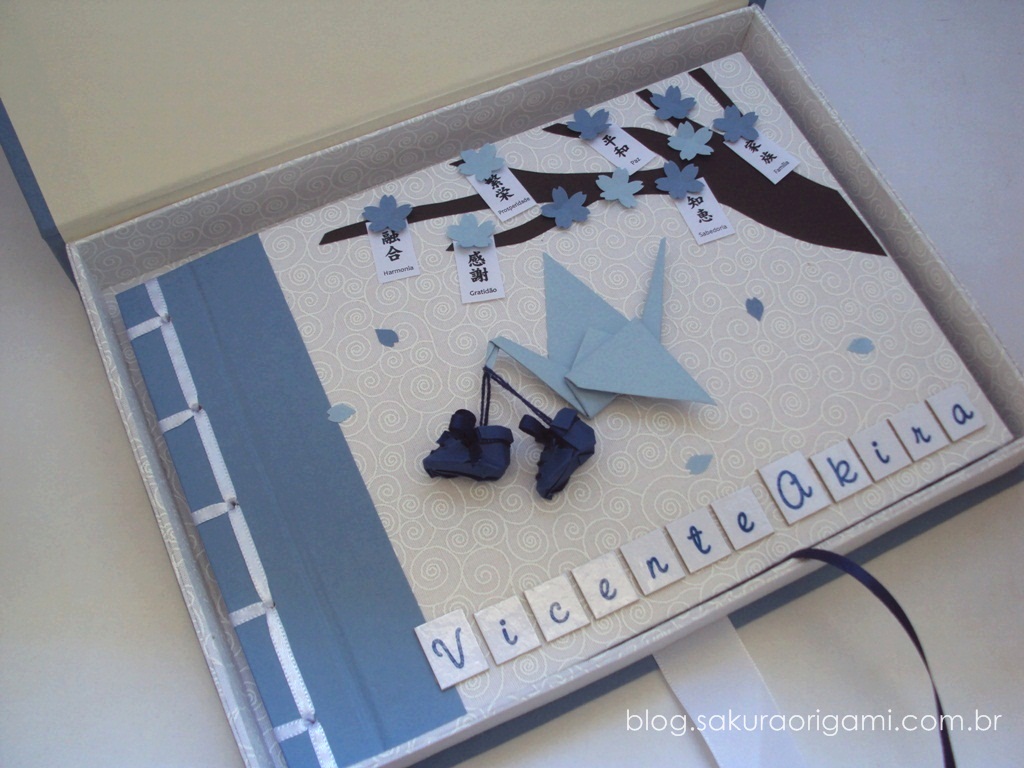 álbum de fotos do bebê - tsuru e  sapatinhos - sakura origami atelie