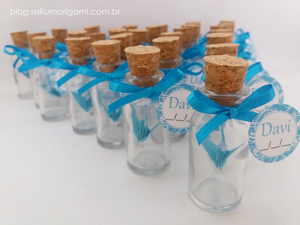 Lembrancinhas de nascimento – vidrinho da felicidade com mini tsuru